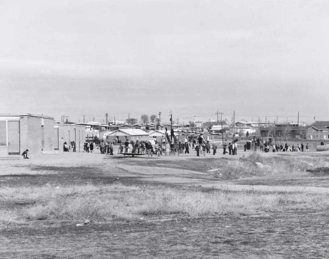 罗伯特·亚当斯《RecessataSchoolinaCommercialZone,theNorthEdgeofDenver,Colorado》,明胶银盐,15.2×19.2cm,1973年©2019RobertAdams