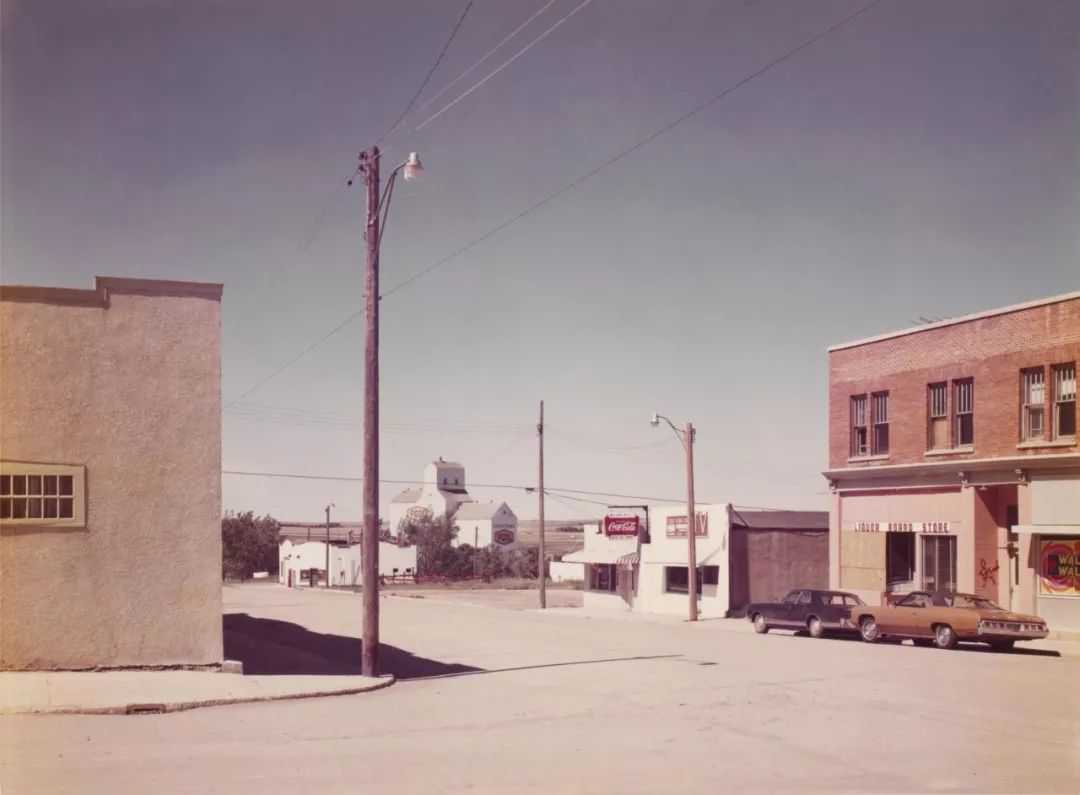 史蒂芬·肖尔《MainStreet,GullLake,Saskatchewan》,Chromogeniccontactprint,20×25.5cm,1974年
