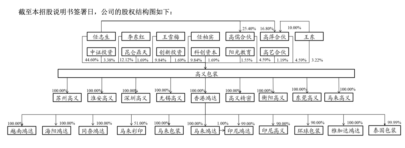 高义包装的家族色彩浓厚,上市之前,公司实控人进行家庭内部财产分配,引入妻儿持股,另外还低价转股给亲朋好友。