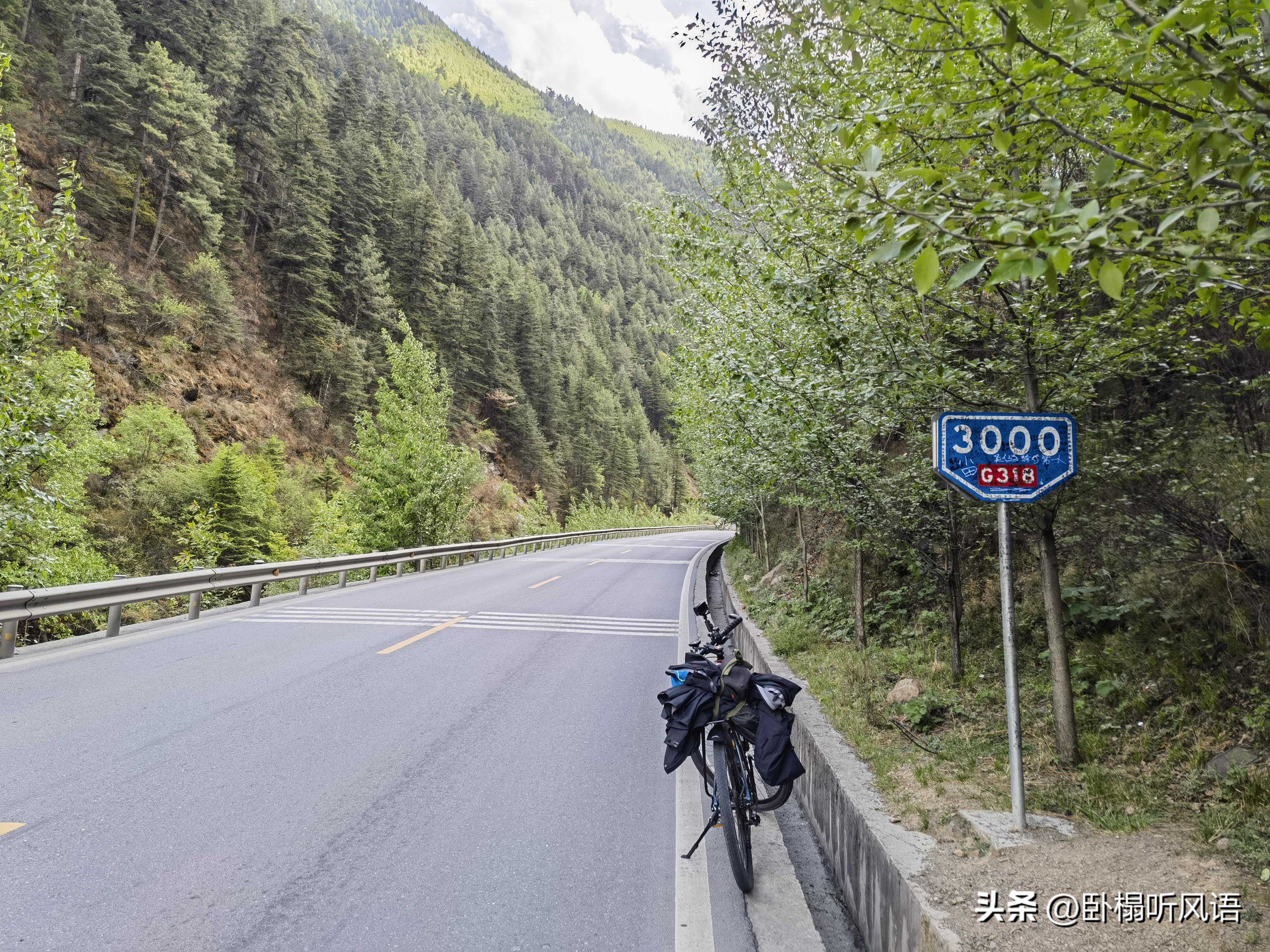 过了雅江隧道,直到相克宗村(,3009是路边的里程碑),是大约17km的纯上坡路!爬坡就算了,下午到晚上还是逆风,真要了老命了!而且过了雅江,就没有手机信号了。
