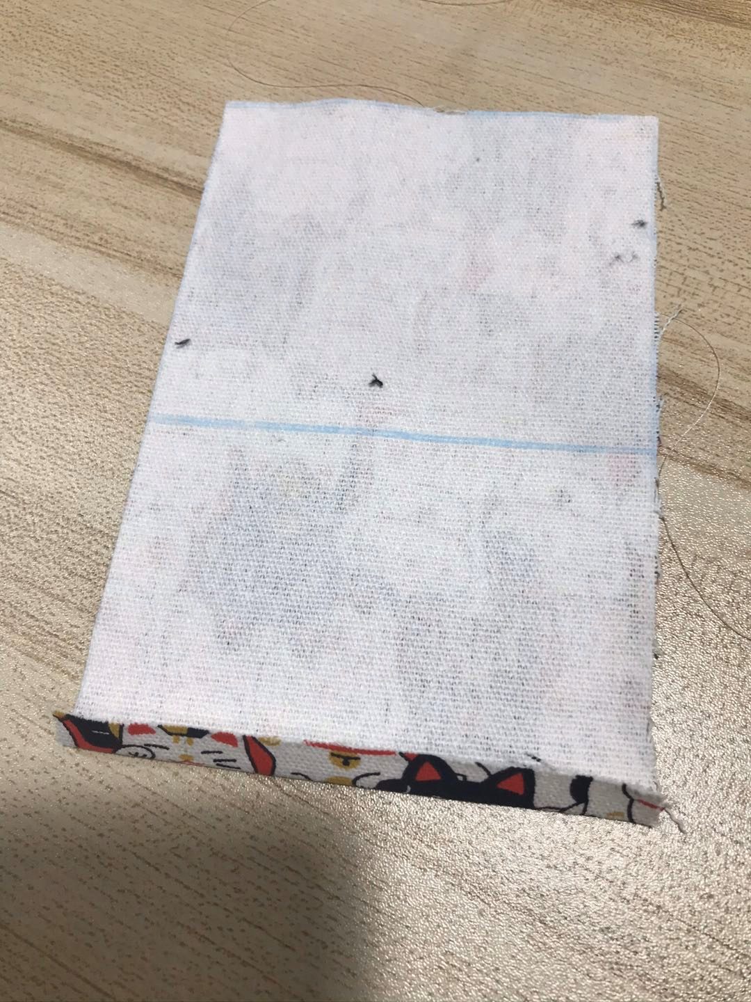 将里布盖在处理好的表布上,里布对表布正面缝合,缝合一圈,缝份1cm,留一返口