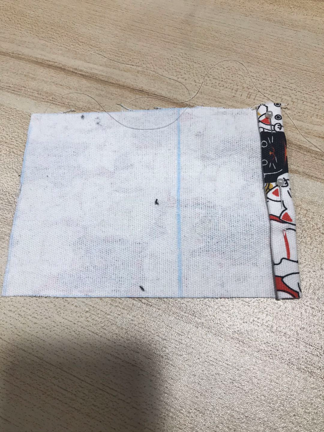 将处理好的侧边固定在对应位置上,与表布缝合,缝份建议0.5cm