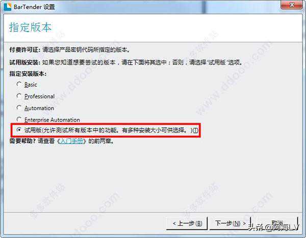 5、选择安装版本类型,这里先选择试用版。
