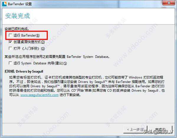 9、安装完成之后,将默认运行软件的勾取消掉。