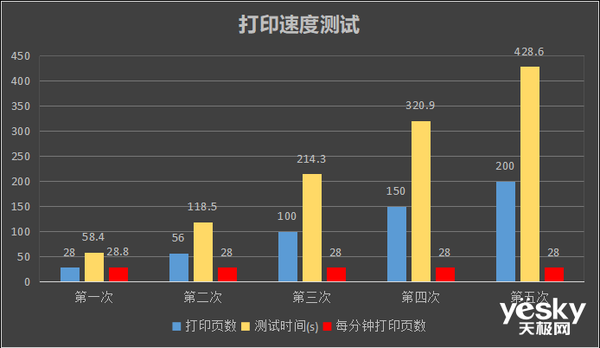 经过5次实际测量,东芝泰格e-STUDIO2829A数码复合机每次的平均打印速度都在每分钟28页左右,有时甚至超过28页/分钟的打印速度,整体算下来与其官方标称的打印速度一致。