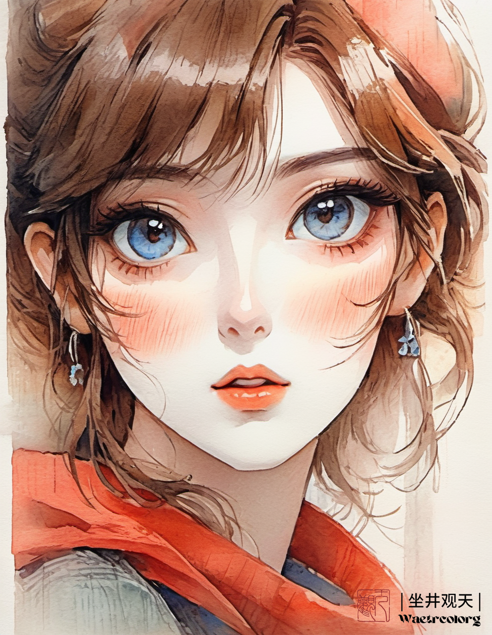 sketch_for_art_examination:189c9304cd1d",Version:。提示词:绘画风格(托马斯·夏勒水彩画大师作品:1.3),水彩风格的女性面部素描与眼睛,在动画美学的风格,庞文派,熟练的底纹,纹理探索,重底纹,可爱和梦幻,巴比松派,剪纸,可见纸的纹理,色彩洗,水彩艺术,最佳质量,超现实,黄金比例,复杂,高细节,简单的背景,可见纸的纹理,洗色,水彩艺术,lora:more_details:0.6,lora:sketch_for_art_examination:0.5,