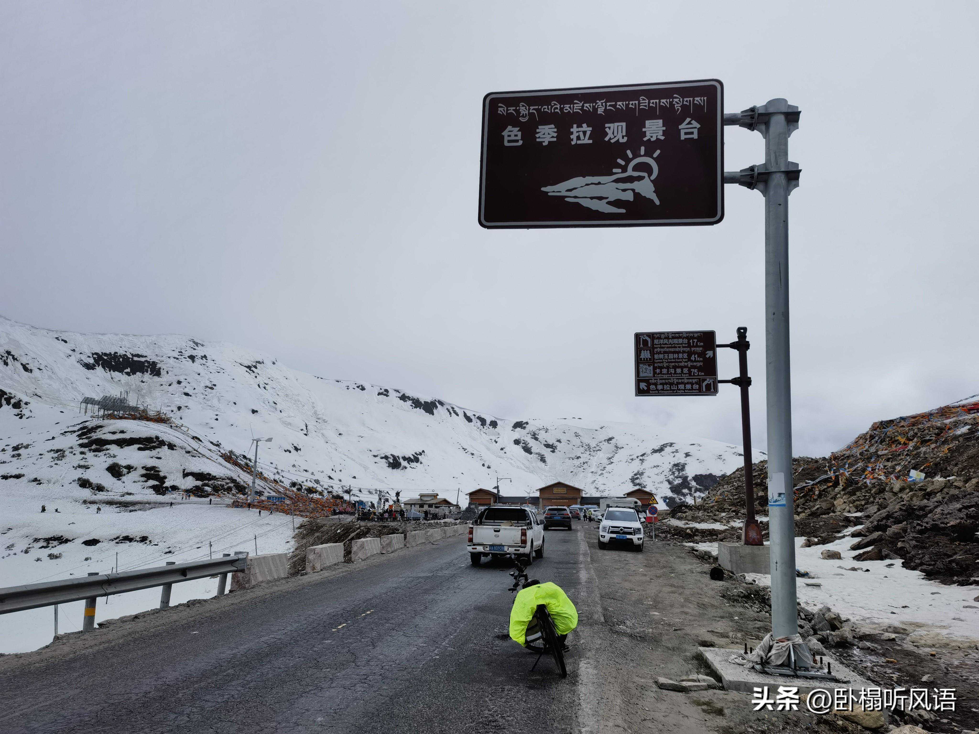 23km后,色季拉山观景台(),山顶非常寒冷,手冻得没有知觉。据说运气好的话,在此可以看到7782米的南迦巴瓦峰。不过南迦巴瓦峰十人九不遇,天气不好,我也没有看到。每年2月份,有机会看到。