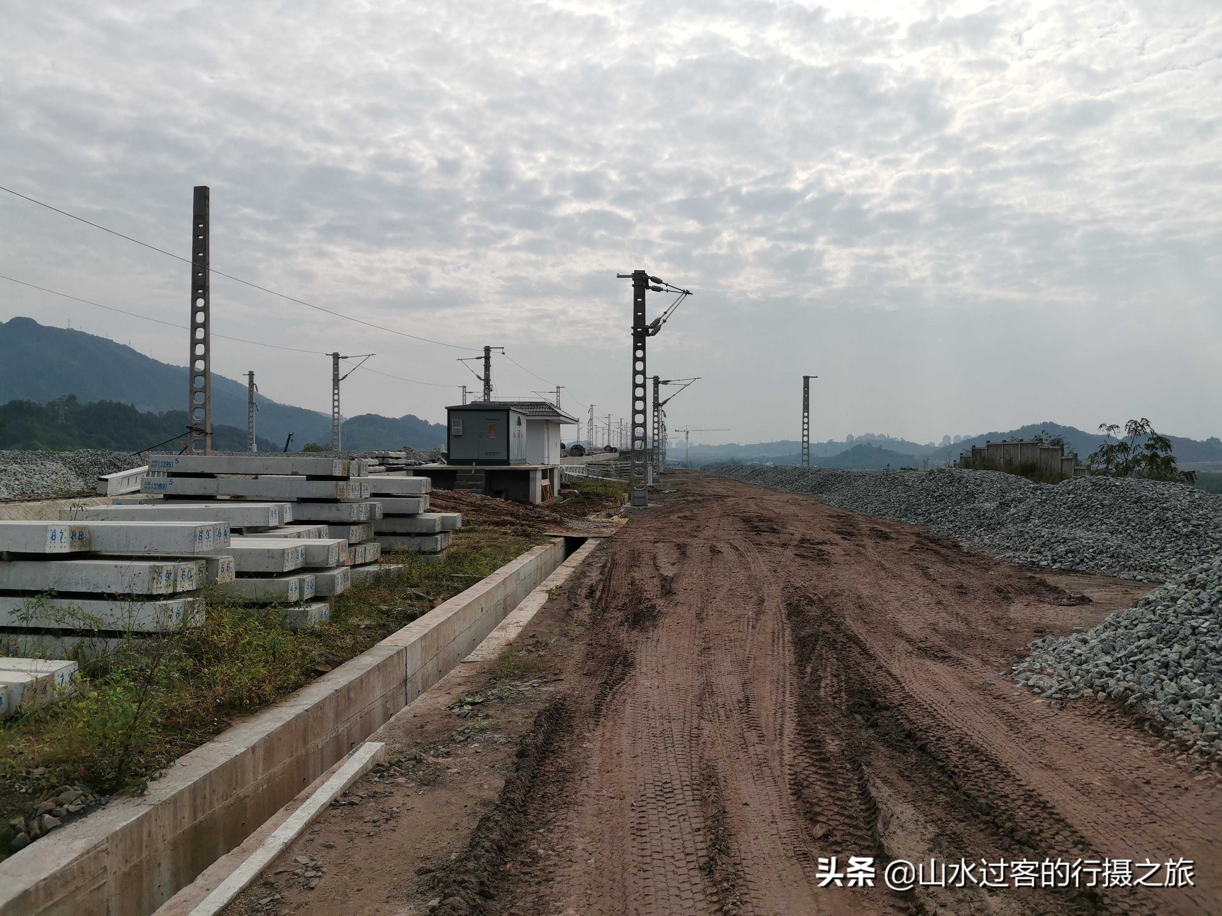建设中的珞璜东站两侧高站台,正线已铺设完毕