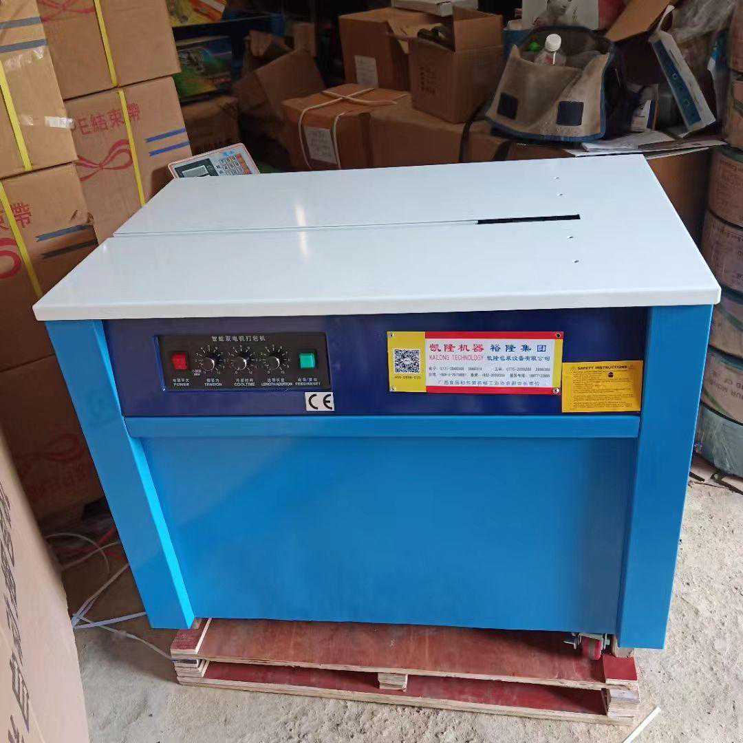 ②侧置式捆包机。捆扎带的接头部分在包装件的侧面进行,台面较低。适于大型或污染性较大包装件的捆扎,若加防锈处理,可捆扎水产品、腌制品等;若加防尘措施,可捆扎粉尘较多的包装件。
