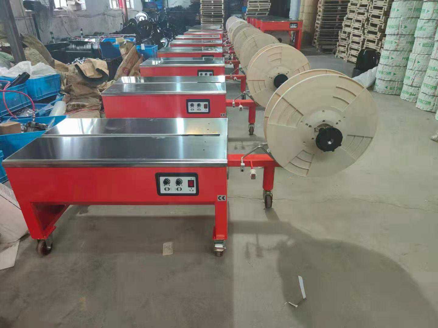 ①塑料带捆包机。它是用于中、小重量包装箱的捆包机。所用塑料带主要是聚丙烯带,也有尼龙带、聚酯带等。