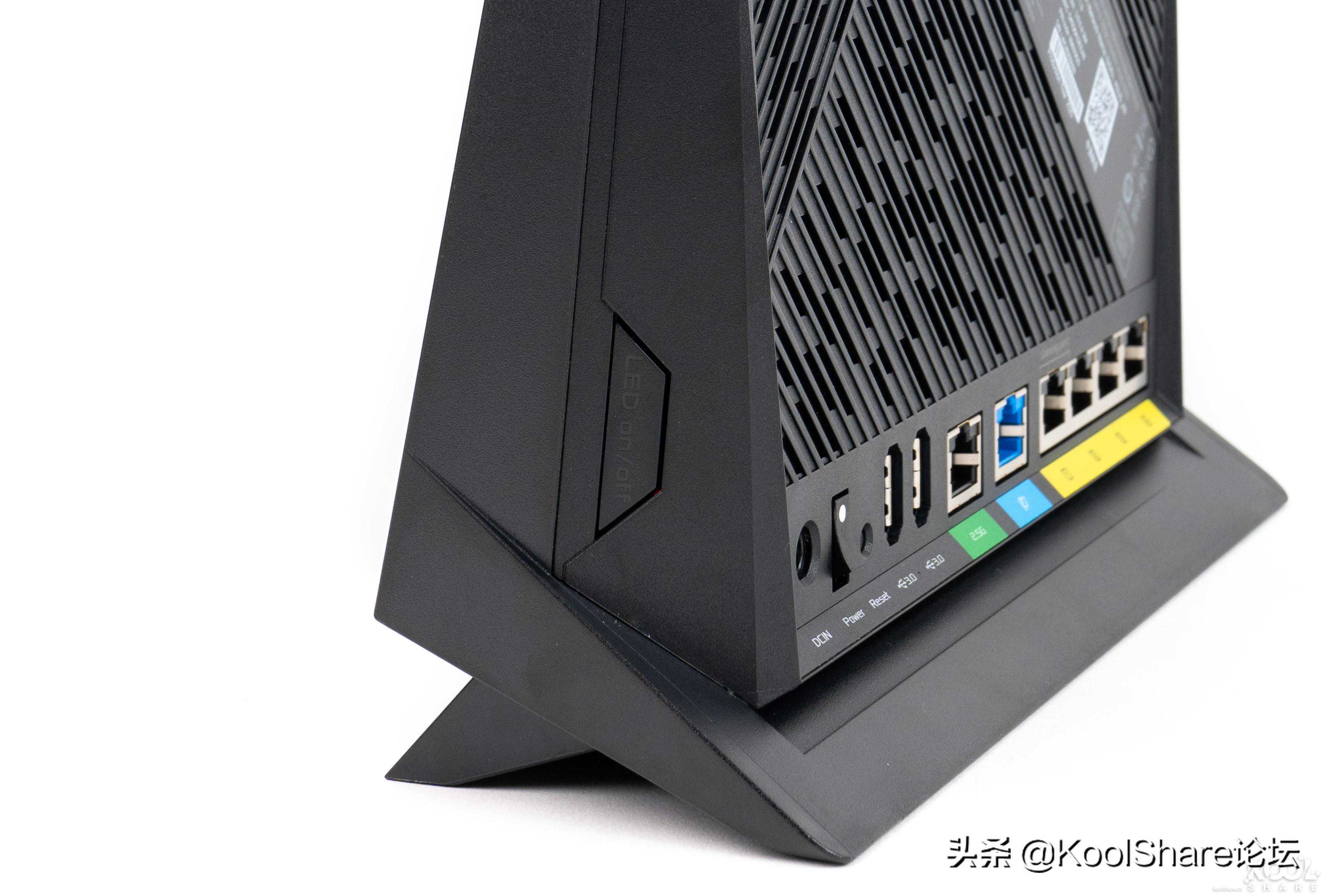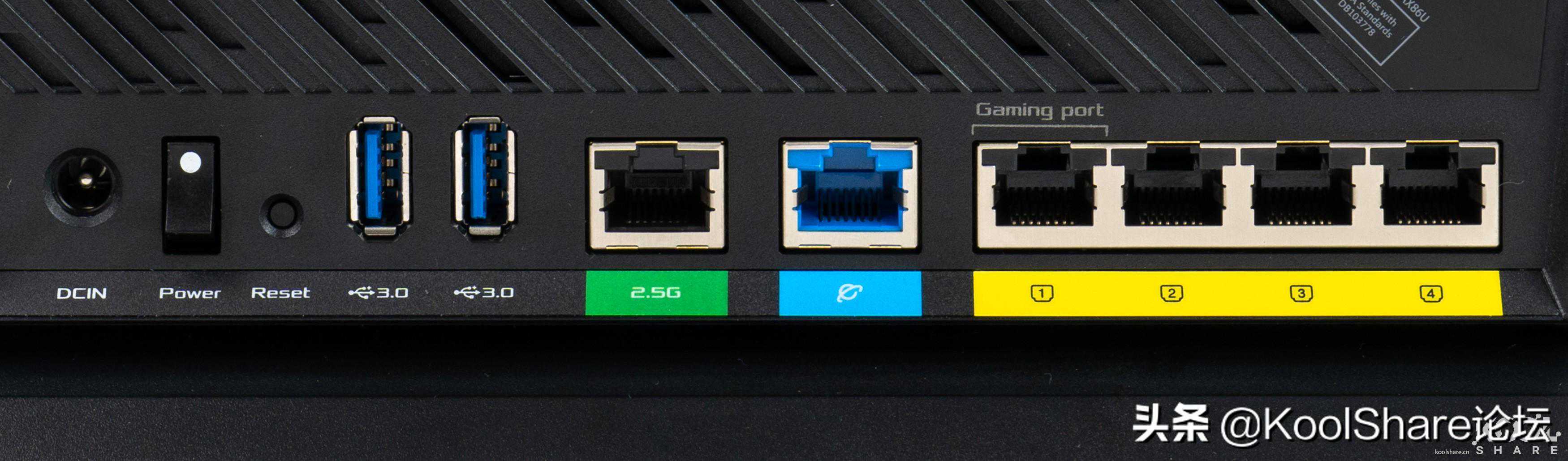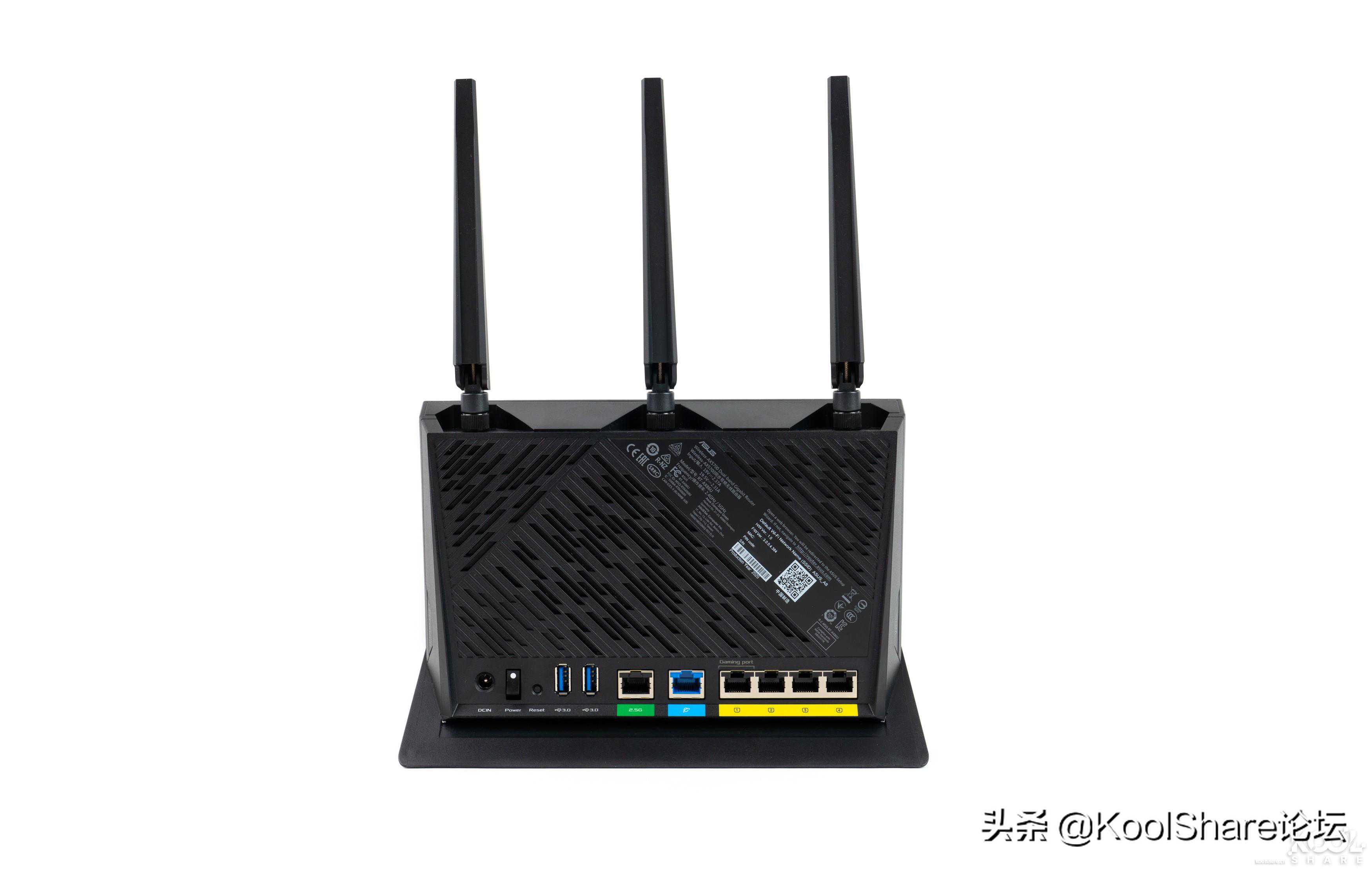 ▲RT-AX86U背面一览。背面也做个大量开孔,类似ROG路由玛雅纹格栅设计,都是侧面开孔,有利于散热的同时兼顾防尘