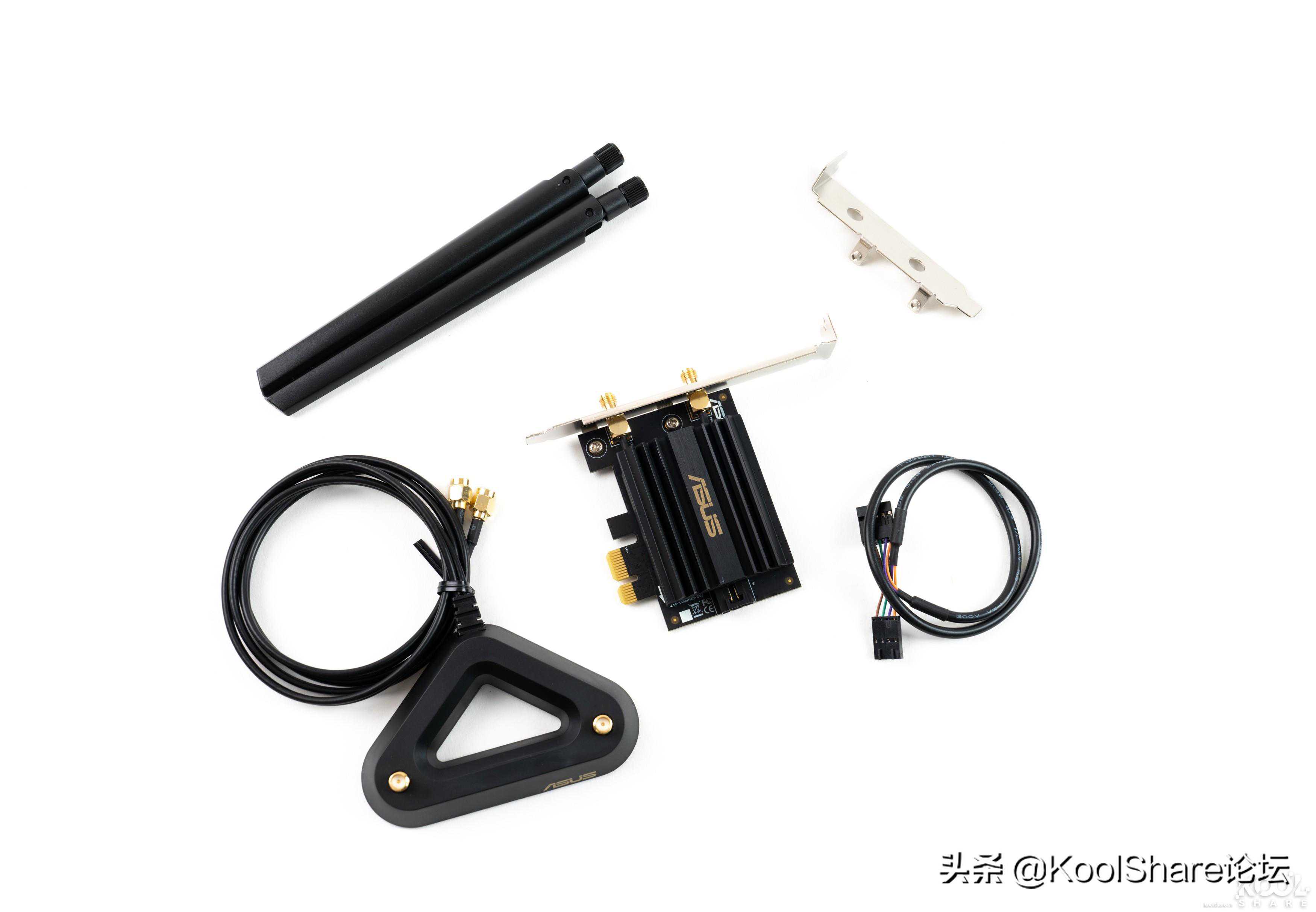 ▲ASUSPCE-AX58BT网卡还配备了高增益外接天线底座,独立式收发器和连接线实现轻松定位,获得上佳信号质量