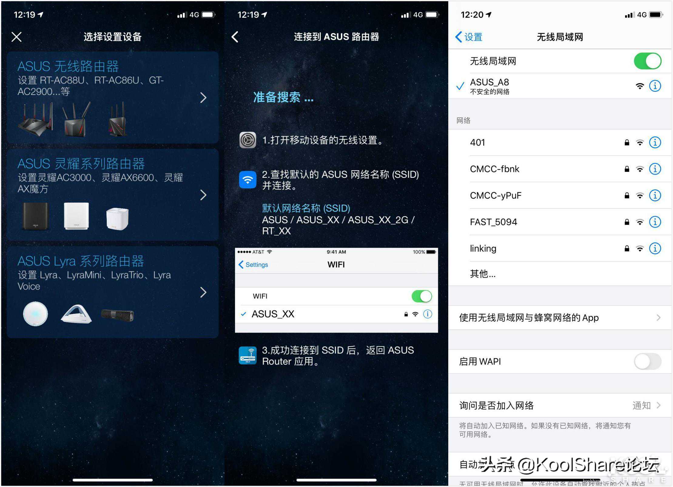 ▲选择【ASUS无线路由器】并根据APP提示连接到指定的SSID