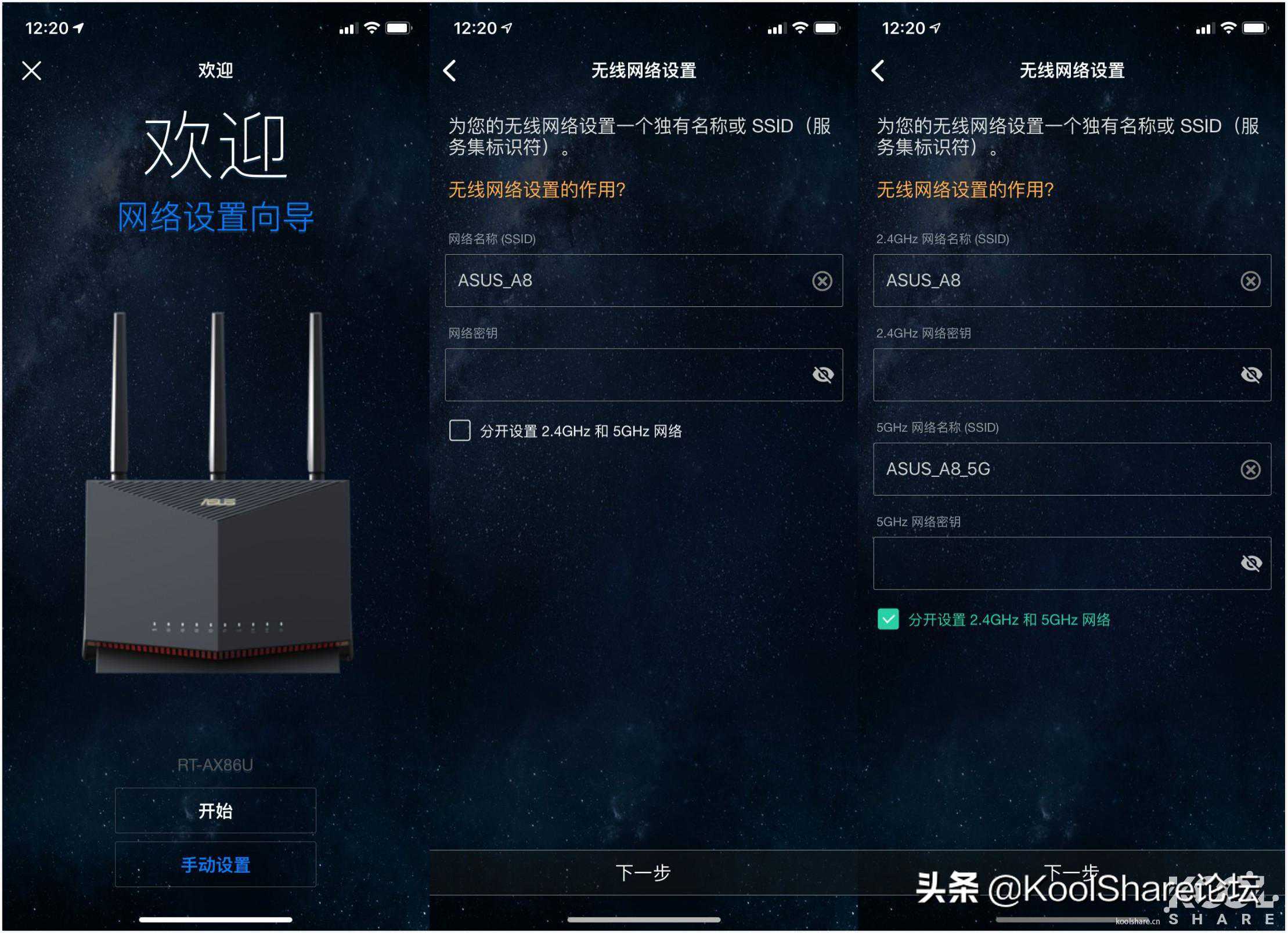 ▲此时就能识别到RT-AX86U了。配置WiFi网络的SSID和密码,建议给2.4G以及5G设定不同的SSID和密码