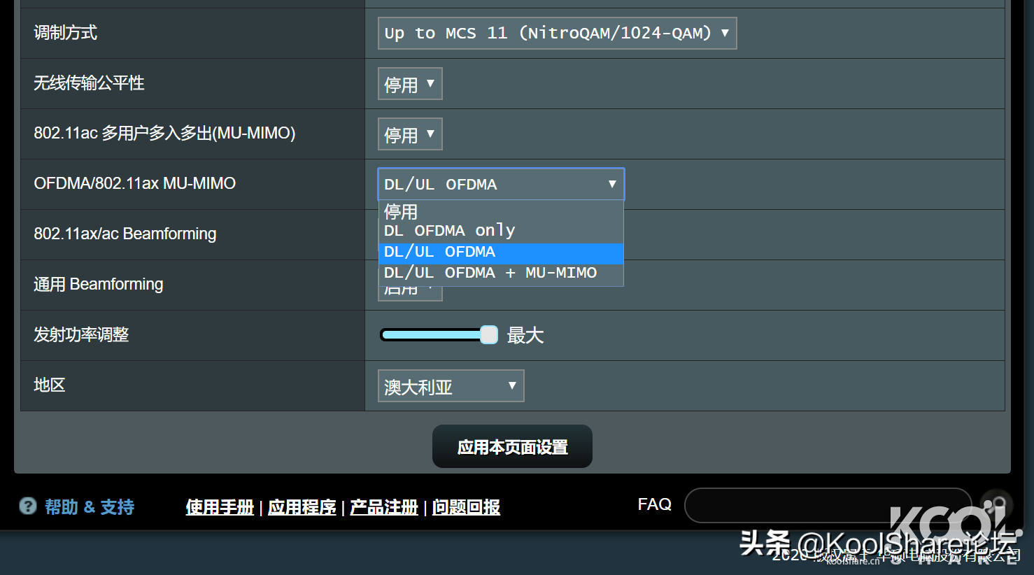 ▲无线高级设置中可以开启OFDMA、MU-MIMO、Beamforming等先进技术