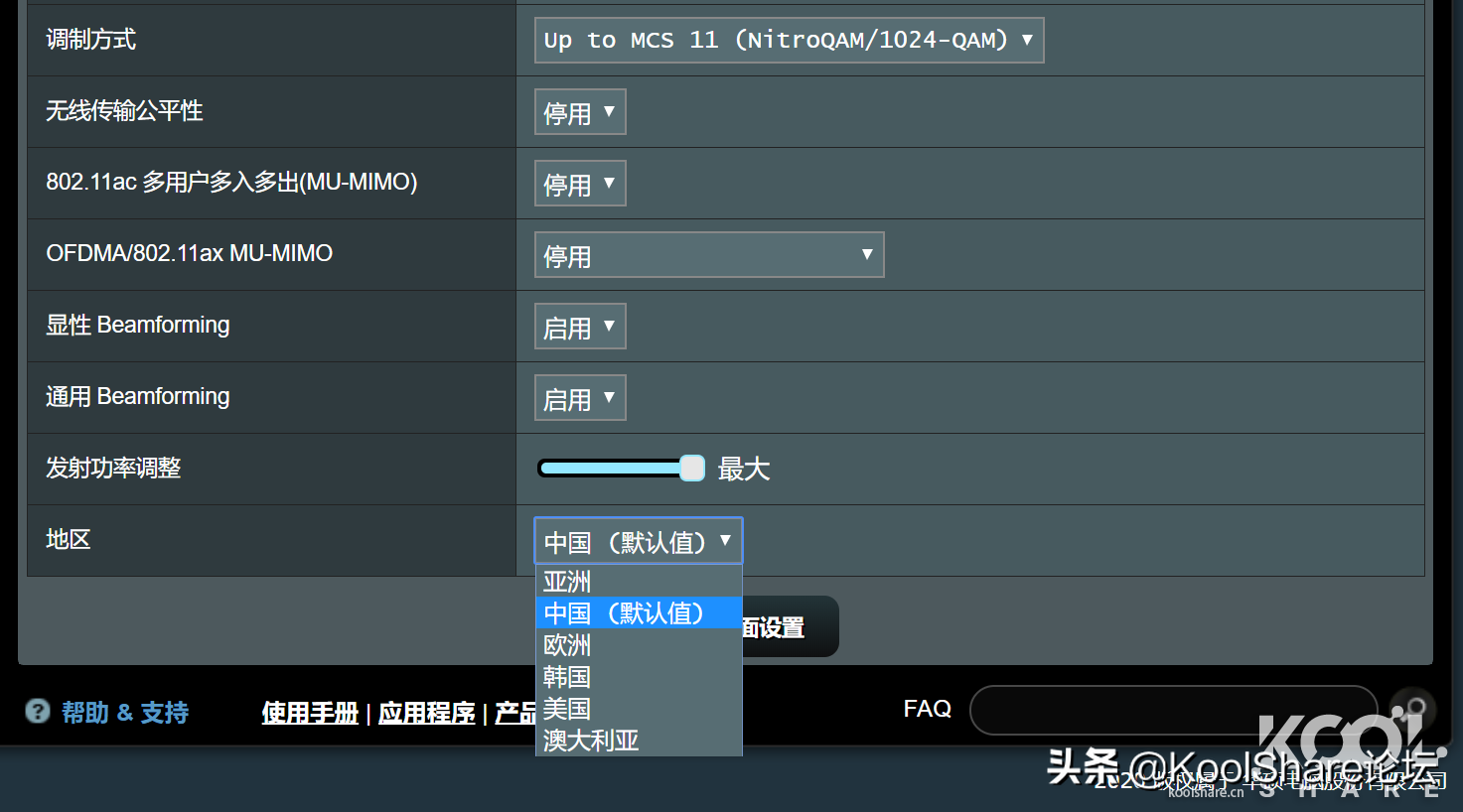 ▲还能通过切换无线地区来获得更高的发射功率和更全的信道