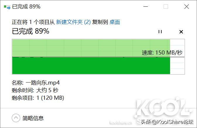 ▲使用ASUSPCE-AX58BT网卡,无线写入速度73.7MB/S