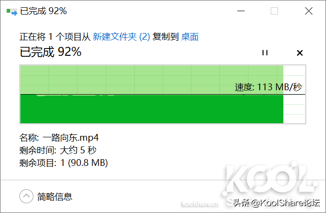 ▲使用ASUSPCE-AX58BT网卡,无线读取速度113MB/S