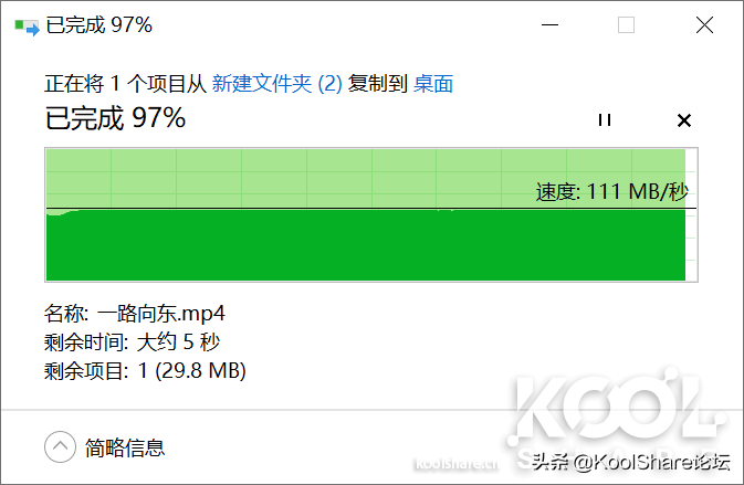▲使用ASUSPCE-AC88网卡,无线读取速度111MB/S