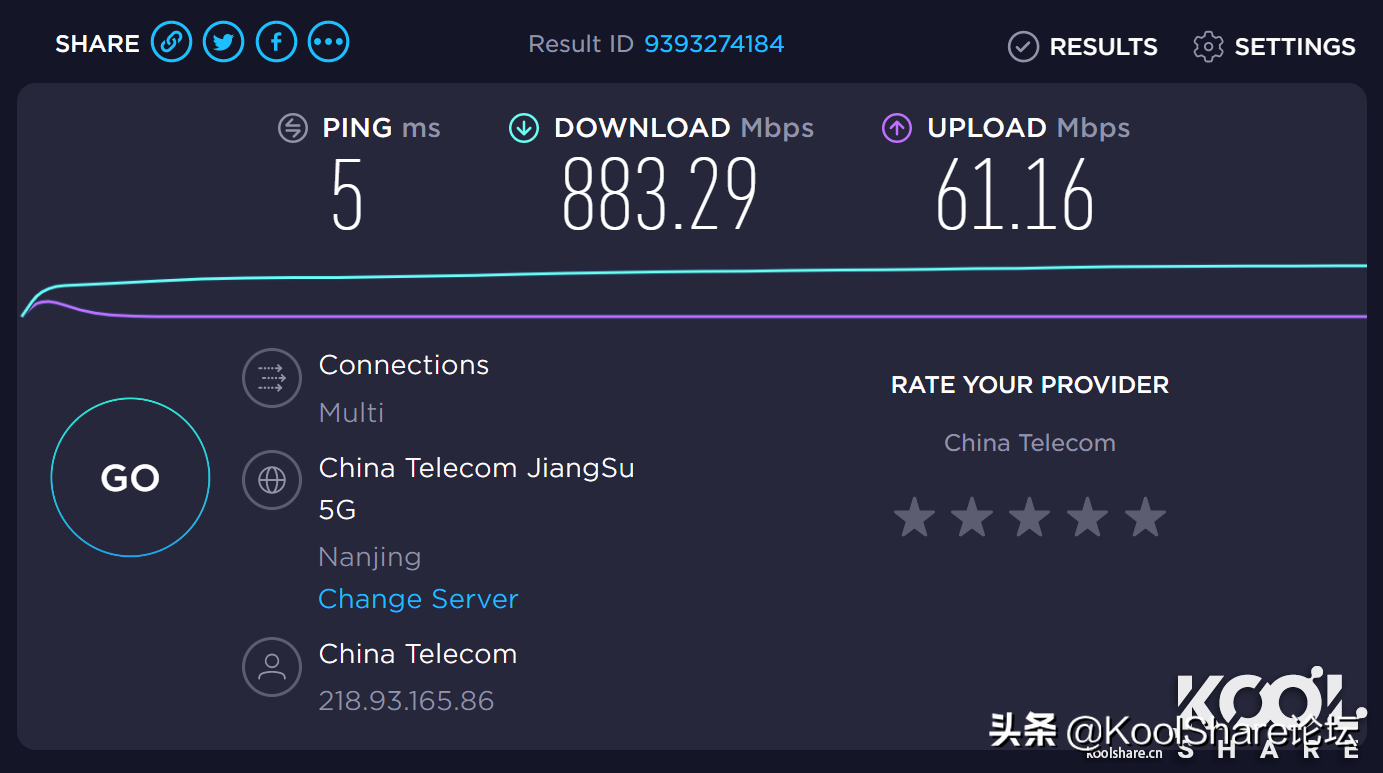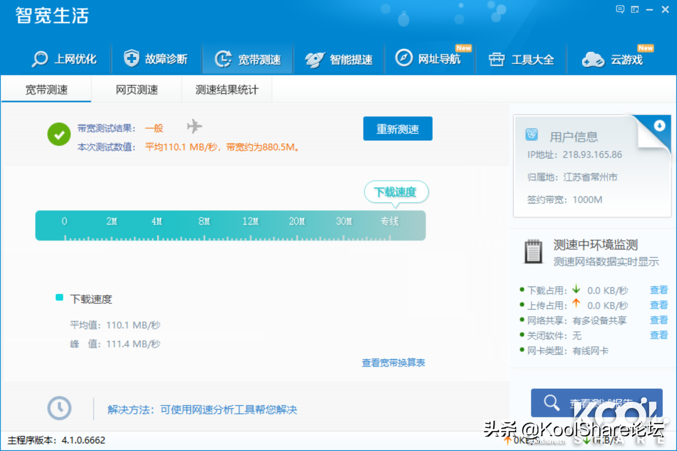 ▲测试环境为江苏电信EPON千兆宽带,签约下行1000M,上行50M