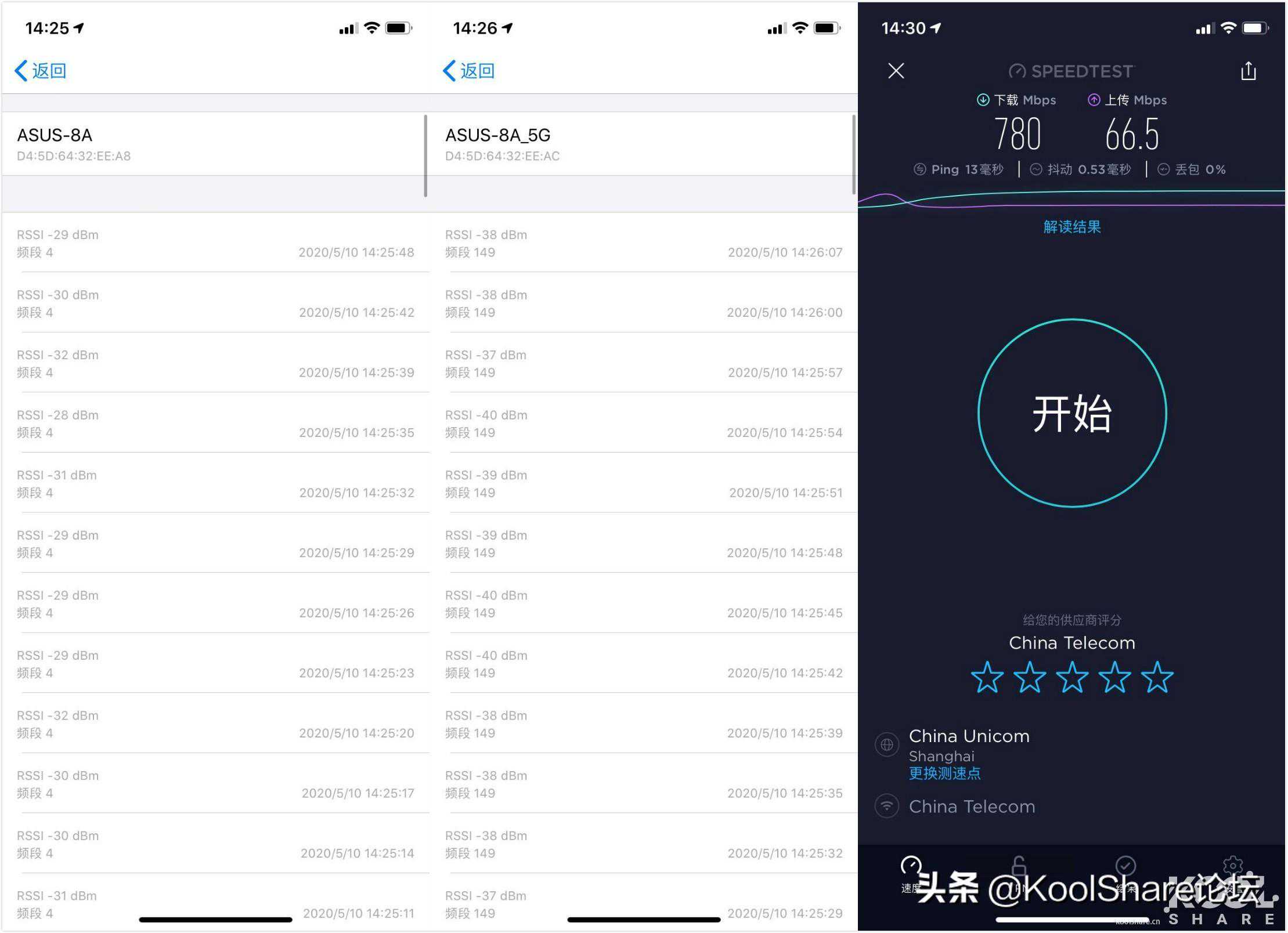 ▲3号位置处2.4G、5G信号强度以及Speedtest测试