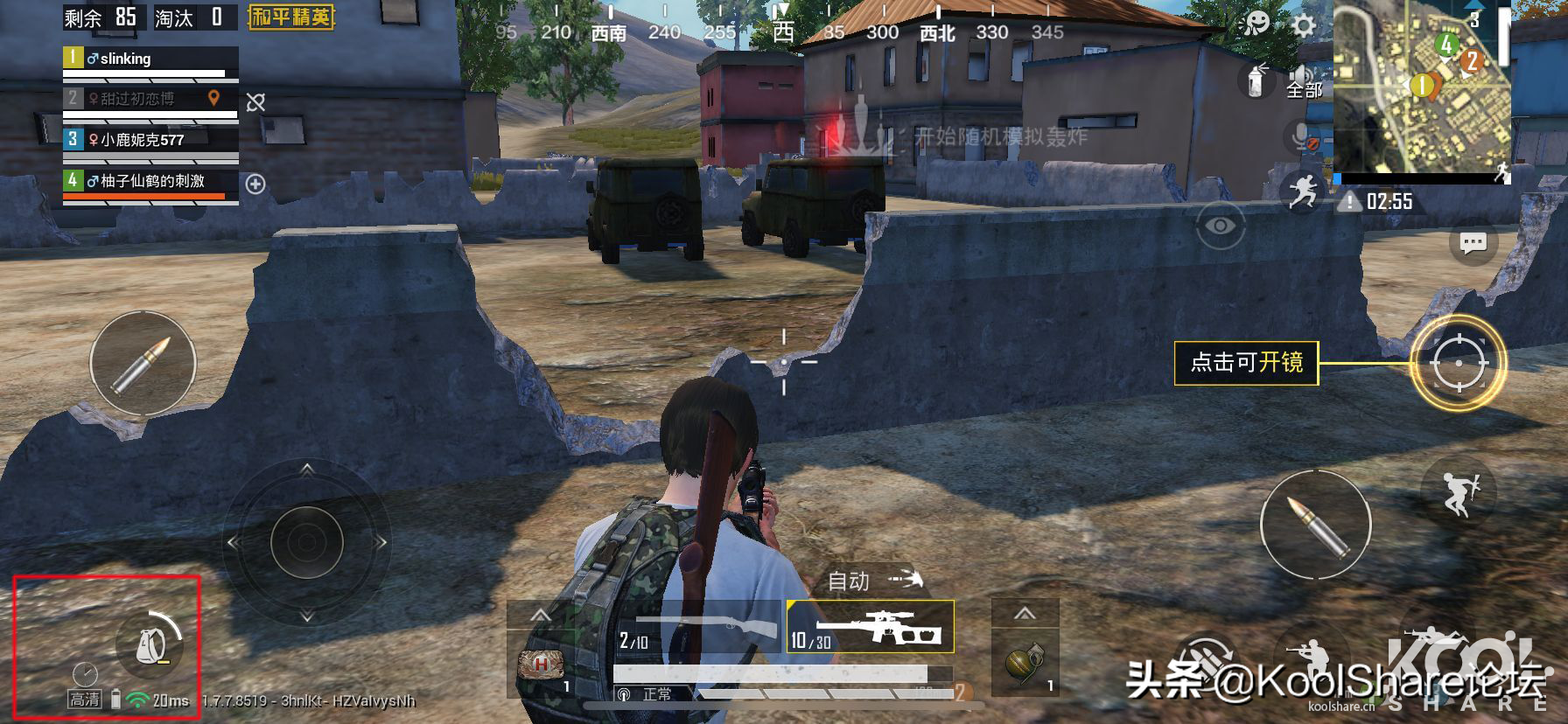 ▲同一位置,在开启手游电竞模式后,延迟稳定在20ms