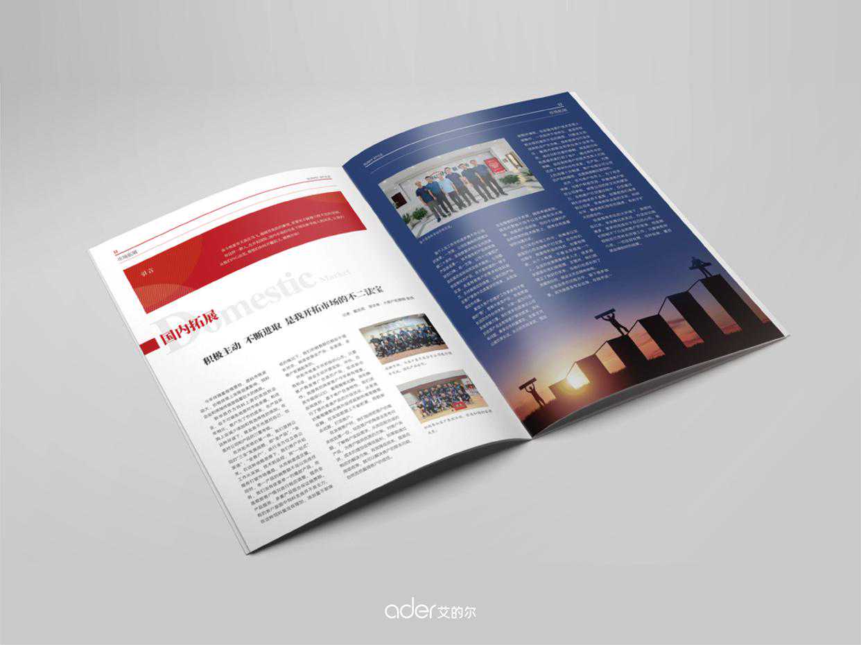 艾的尔品牌设计与企业进行深入沟通,了解到客户需求,画册为新年期刊,但不能过多用新年元素,整本画册设计版式要求喜庆、大气和简洁,在封面设计中,以“斗志昂扬,积极向上”、“不忘初心,砥砺前行”等元素来设计的,体现了企业实力“全力保增长,再创新辉煌”的主题且具有行业的稳重感。