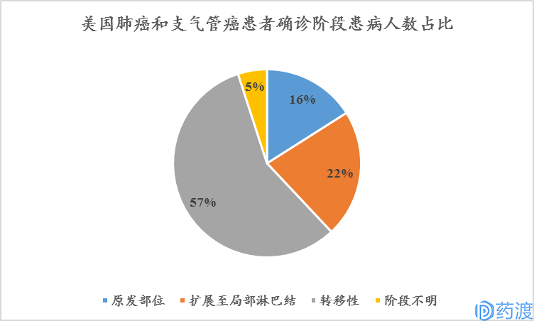 图21美国肺癌和支气管癌患者确诊阶段患病人数占比