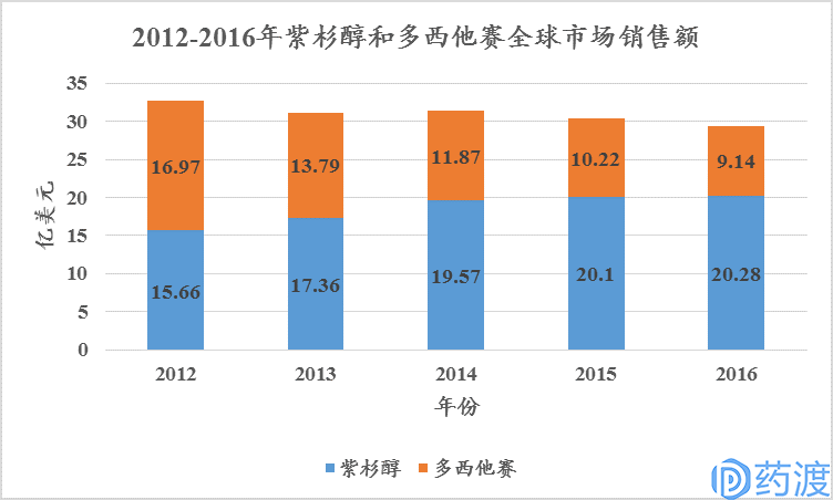图342012-2016年紫杉醇和多西他赛全球市场销售额