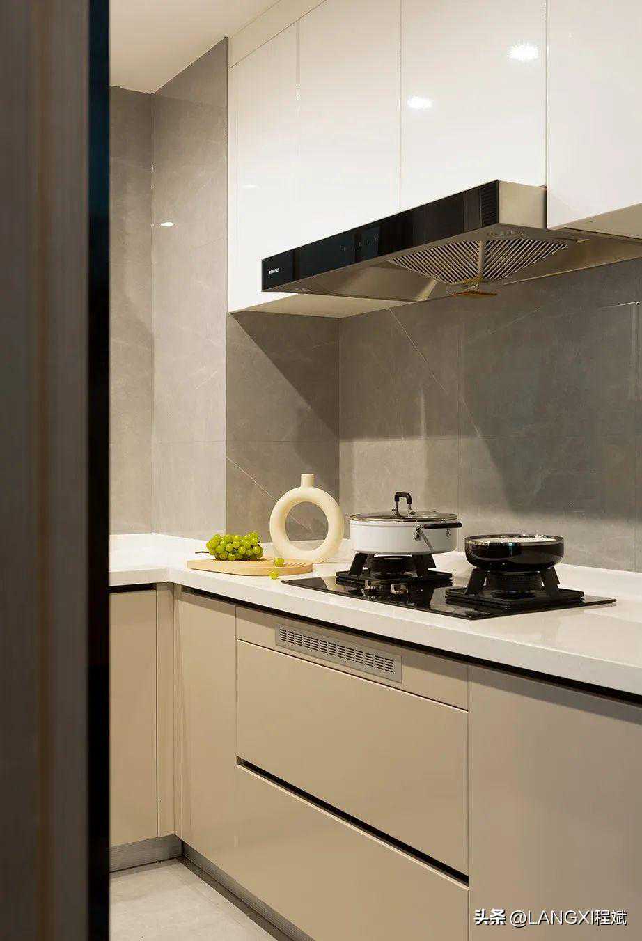 在厨房的区域我们没有做较大的改动,地柜保证厨房的储物空间足够,常规化的操作台面保证业主使用起来更方便舒适。