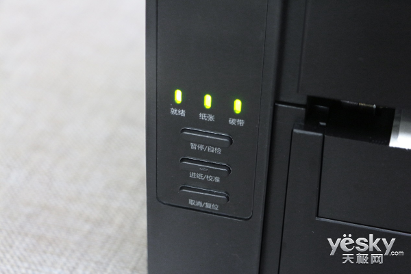 在控制面板上,博思得E200设置了3个指示灯、3个按键,分别是暂停/自检、进纸/校准、取消/复位。功能明确且精简的指示灯和按键设计,让用户的操作更加便捷好用。