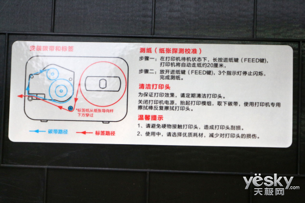 按照以上步骤,安装好碳带、标签纸,,接下来需要进行纸张校准操作,按照快速安装指南上的步骤对纸张进行校准。如此,整个初始安装步骤就已经完成了,非常简单快捷。