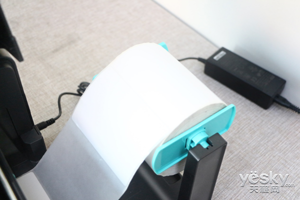 2、把装好纸卷的纸卷轴,放置在拉出的纸架上(标签纸面朝上)。
