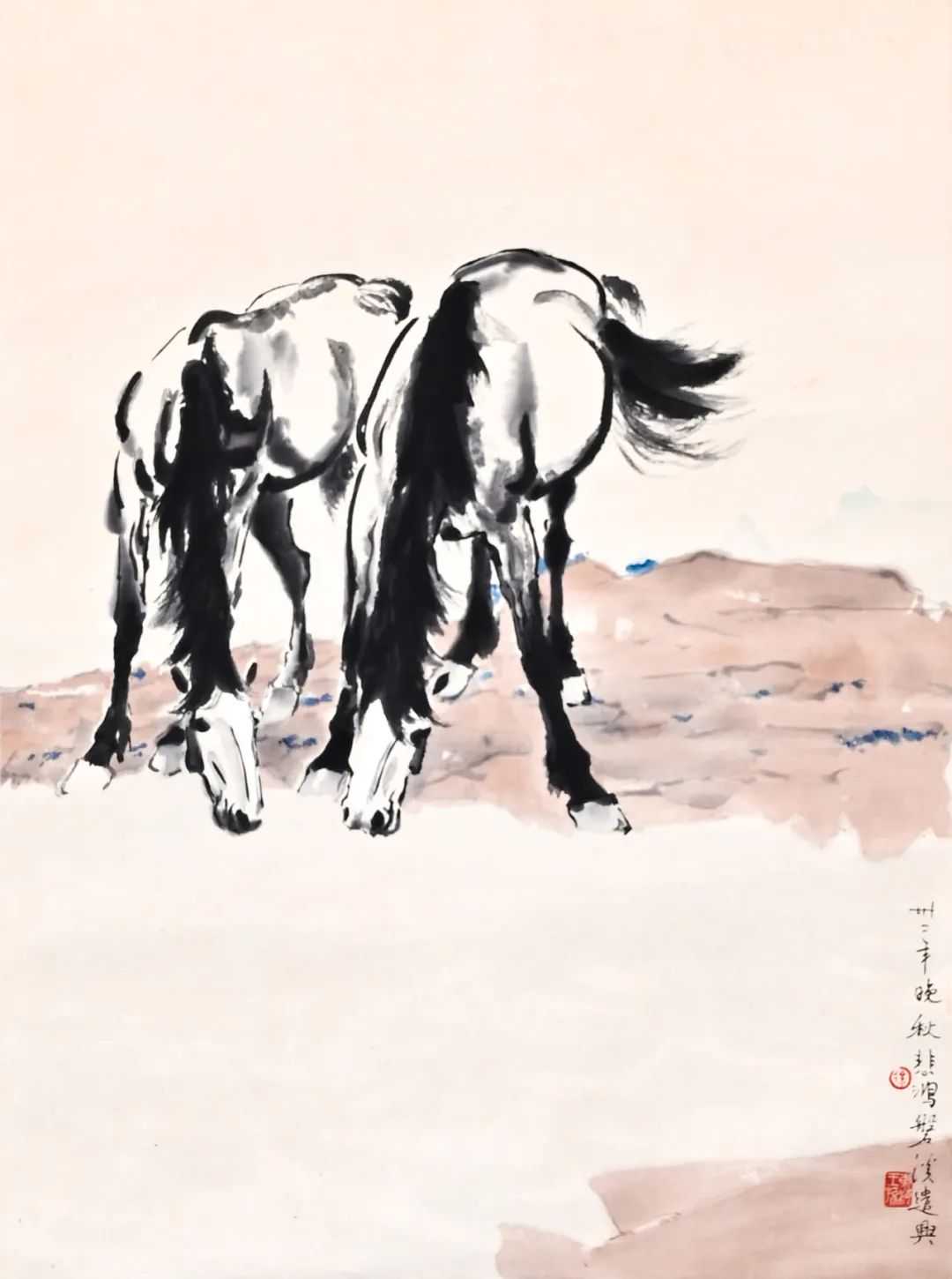 徐悲鸿《饮马图》1959年荣宝斋精制木版水印
