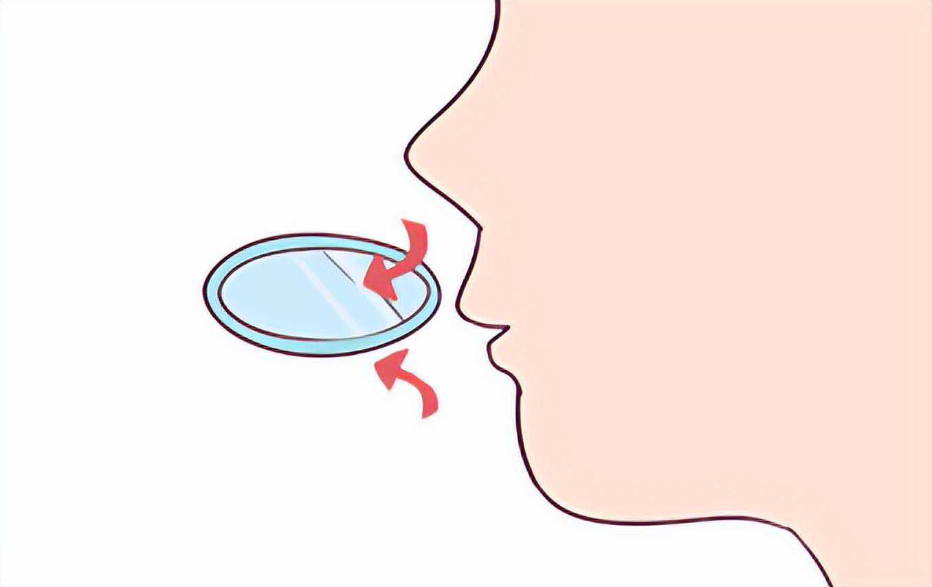 如果熟睡捏唇被惊醒,那就继续做“单面镜实验”。孩子熟睡后,将单面镜对着孩子鼻子、上唇中心,观察是否有水雾出现,并用记号笔画圈标记。接着,将镜子放在同样的位置,用手轻捏住嘴唇,再观察水雾圈的大小,再次画圈标记。