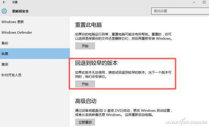 好吧,每个人的品味和需求都是不同的,也许当你用了几天Windows10就受不了了,后悔了。没关系,选择升级的形式安装Windows10,最大的好处就是可以回滚以前的系统版本。