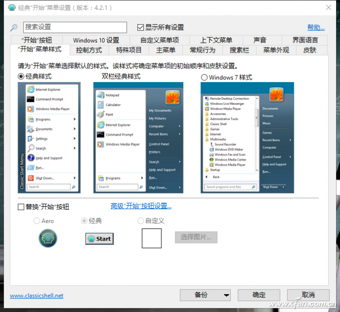 第一次开启时,程序会让你选择一款面板:第一个是Windows2000,中间近似WindowsXP,而最右就是Windows7,大家根据喜好选择。若想在Windows10上保留Windows7的操作感,只改动界面是不够的,还需要在控制上下功夫,就看你想怎么做了。