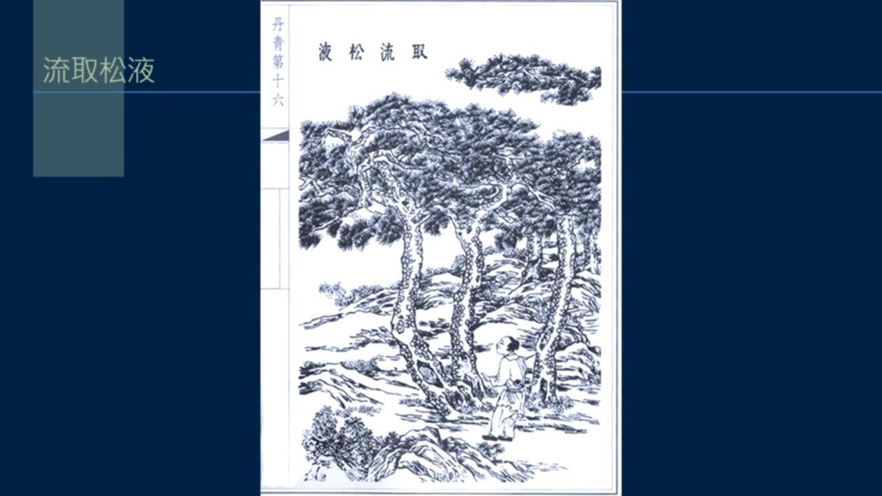 流松香的方法並不難,在松樹根部鑿一小孔,放入一小燈盞,慢慢加熱,松樹的膠液,就會傾流而出。