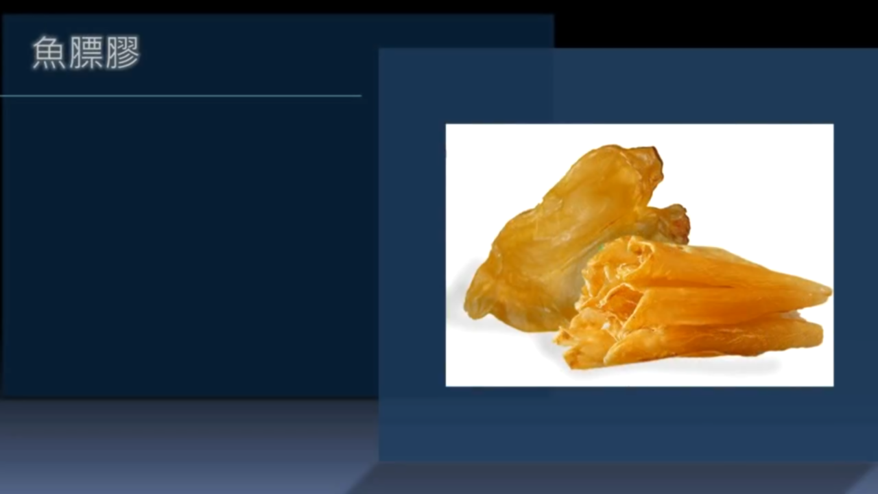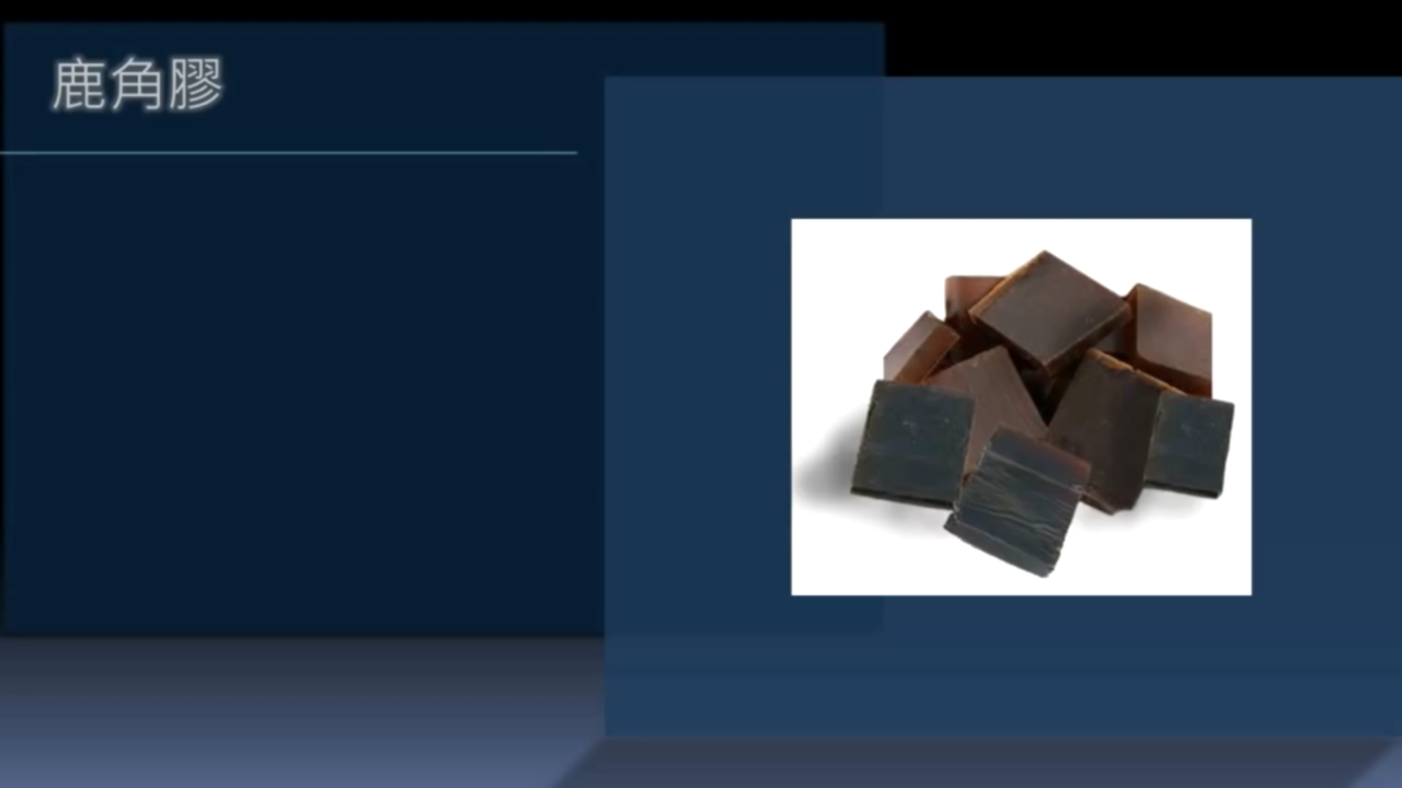 ■膠質:鹿膠、牛膠、魚膠等。