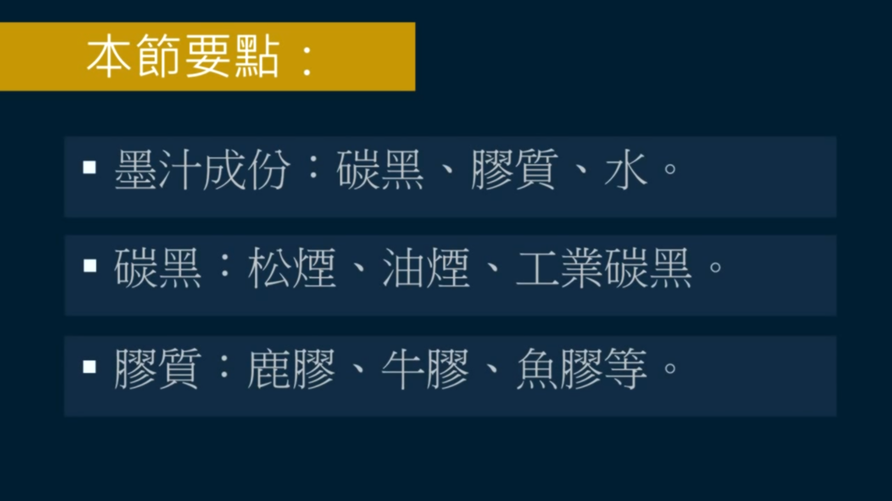 凝質就是膠,通常是用動物膠。也就是說,碳黑、膠質和水,是墨汁的三大主要成分。
