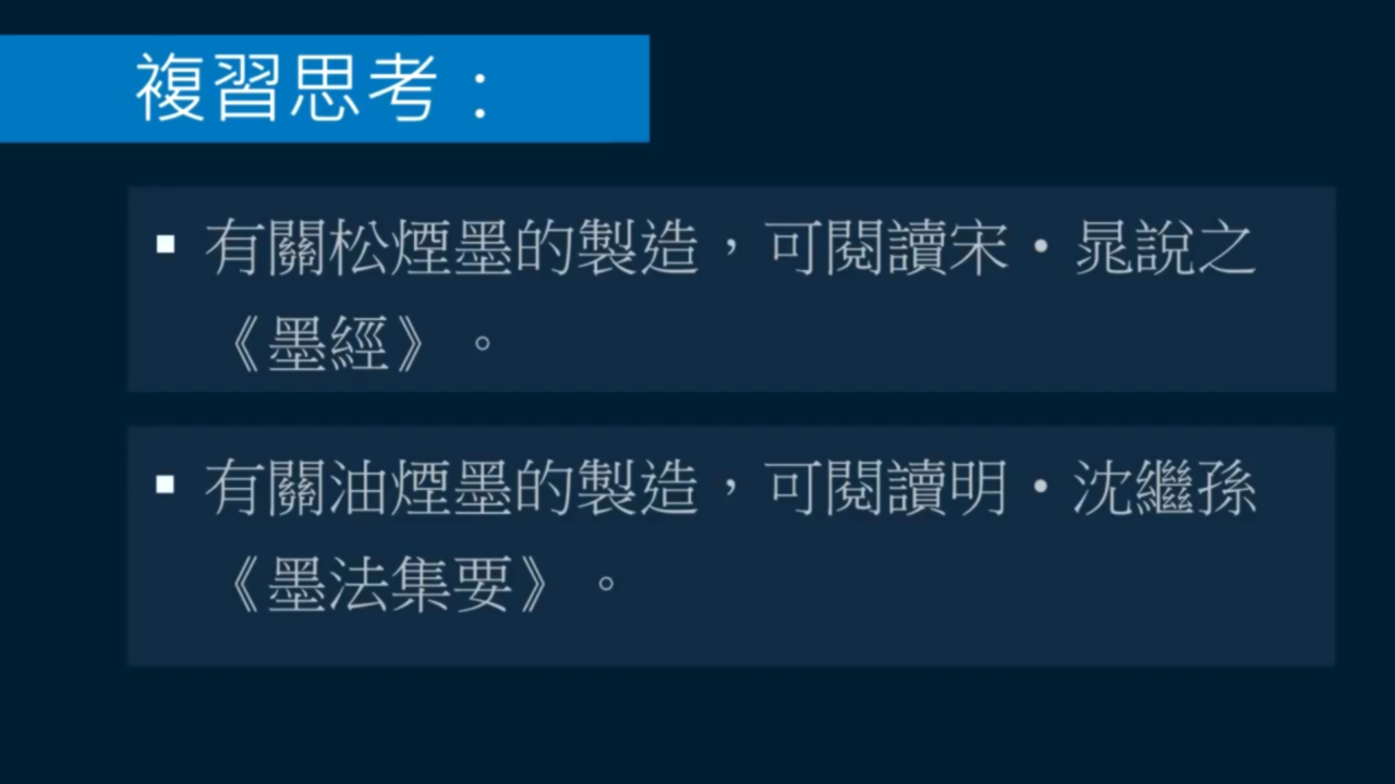 ■有關油煙墨的製造,可閱讀明·沈繼孫《墨法集要》。