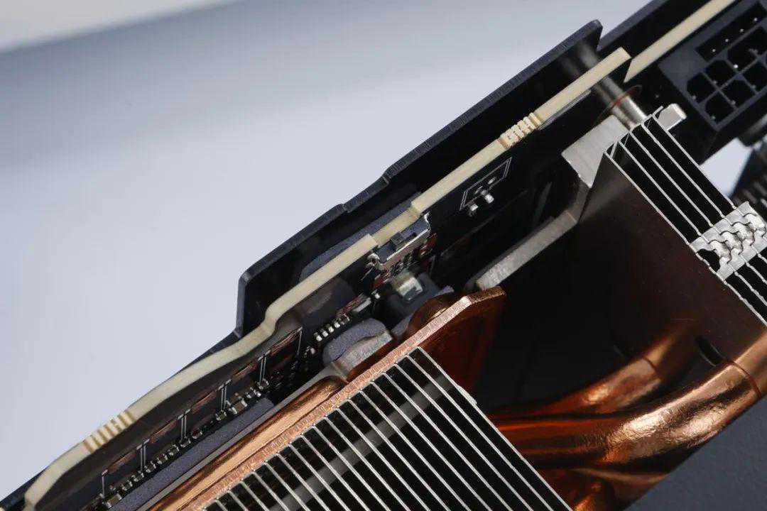 从实用性的角度来看,一体式金属背板可以提升显卡强度,特别是对于这款需要高效散热设计的旗舰级显卡来说,一体式金属背板带来的强度提升尤为重要。不过在这款显卡的一体式金属背板上,我们也看到了前所未见的大面积镂空设计,这自然是与其散热设计有关。
