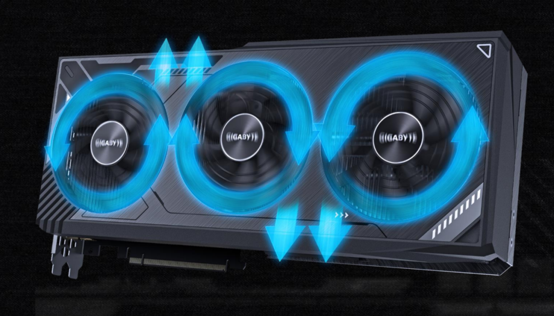 此外,其3个散热风扇还采用正逆转气流导向设计,这种设计的好处在于可以让邻近的风扇风流导向同一方向,加强风压与减少风流,从而引导气流将热量从显卡的上下两侧排出,使得整体散热性能更高。