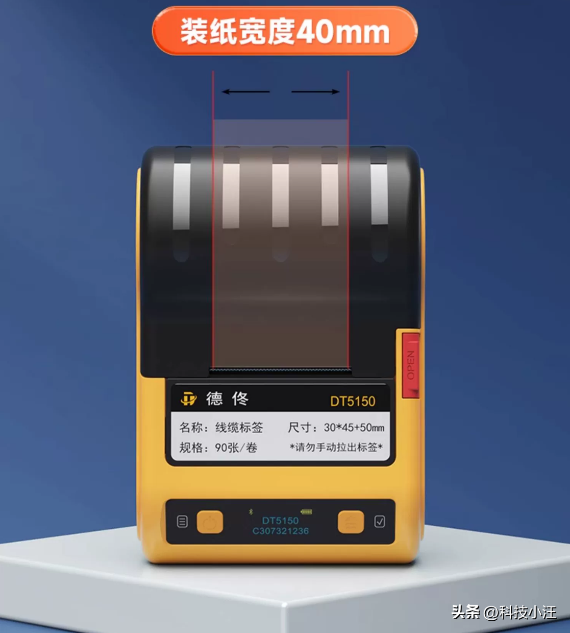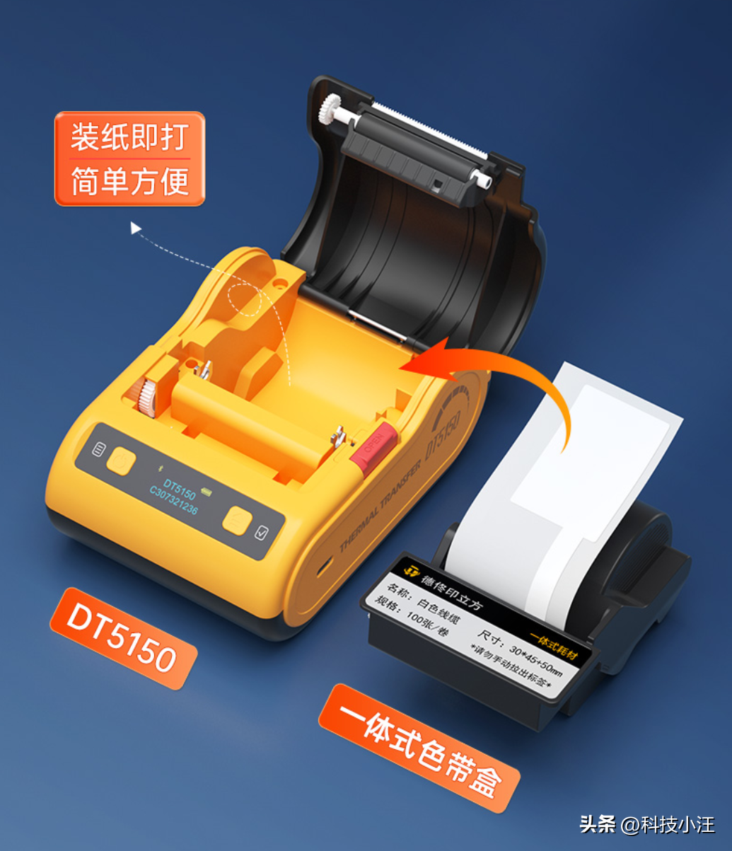 这款德佟印立方DT5150热转印线缆标签打印机支持多款一体式色带盒标签纸,适用于各种通信线缆标签打印、平面标签打印以及各种定制标签打印,装纸和使用都非常的简单,很容易就能快速上手。