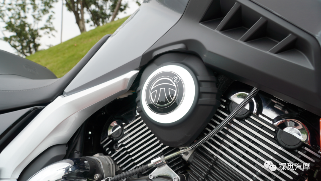 一台小排量V缸,居然能凸显出这么大的体量感,上面仿的散热鳍片也是布林布林的。视觉效果真的是非常到位。
