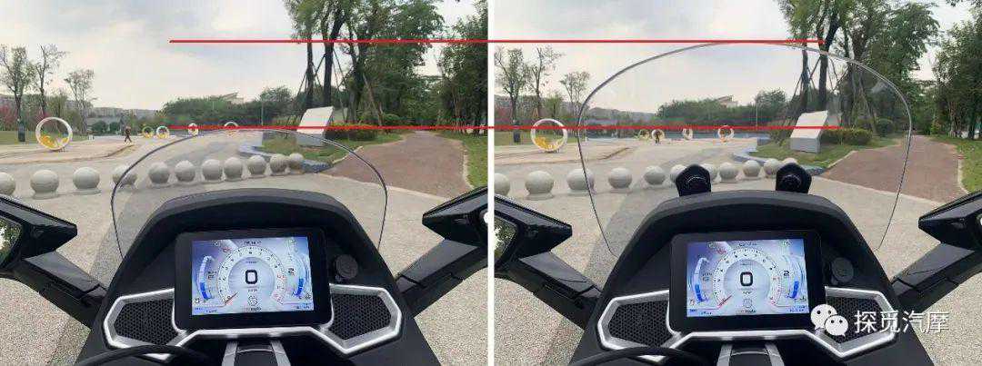 经过实测,这个电动风挡降到最低时,以我的正常坐姿整个脖子包括肩膀都能吹到风,升到最高位置时眼睛及以上可以吹到风。