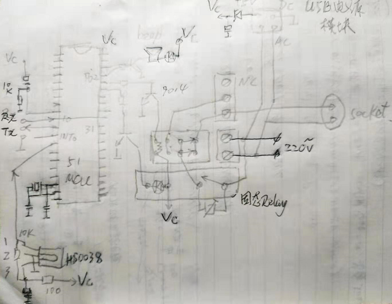 (9)P04=Jmain(总开关固态继电器)=P03+10k上拉+1K串接9014-B极,9014-C极+固态继电器(IJmain=12MA)。负载接50W灯,导通时,输出接点压降=8VAC。