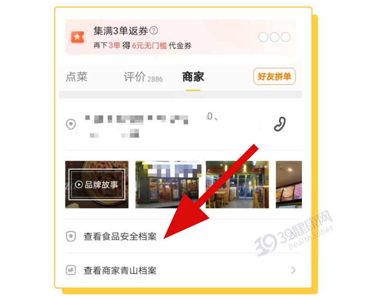 点开商家信息,查看食品安全档案