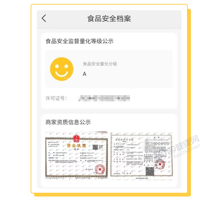 这可查看店铺的食品安全许可和食品安全等级