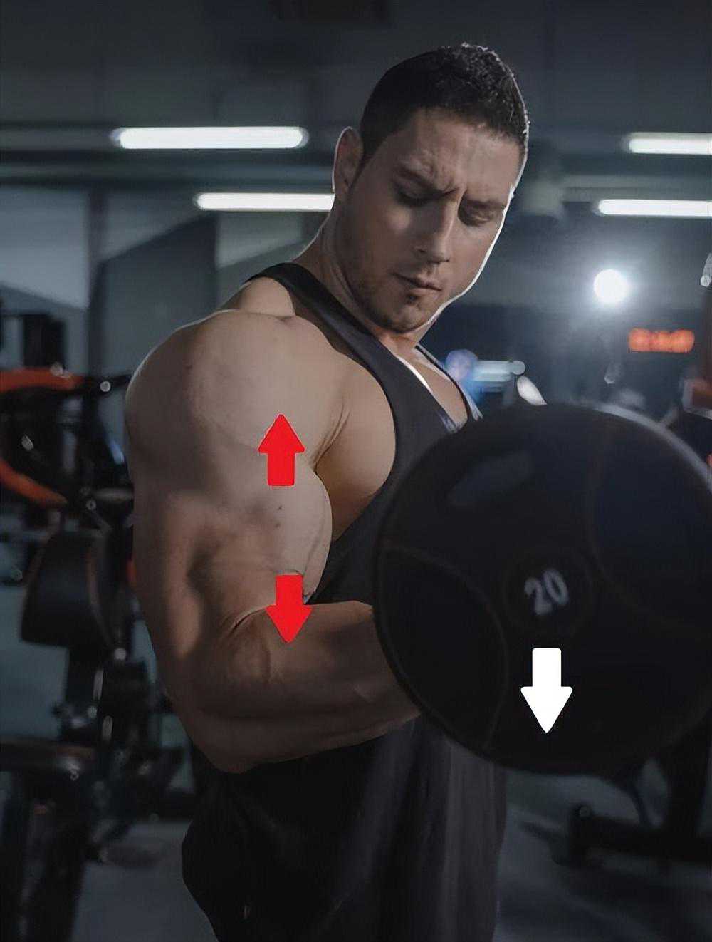 例如在哑铃弯举中,重力作用于哑铃,哑铃把肌纤维往下“扯”,我们自己的骨骼支撑,把肌纤维往上拉,则构成了一个往两边张开的力。